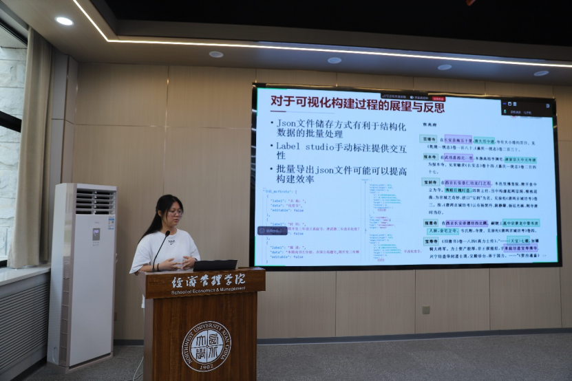 研讨会还举行了北京大学“可视化看中国”课程设计报告示范,北京大学“可视化看中国”选修课程同学们分别展示精心准备的课程成果。课程设计以可视化唐代历史为中心,报告充分展示各学科本科同学通过课程实践,利用人工智能和信息技术,特别是可视化与可视分析方法,叙事分析唐代历史信息。随后,袁晓如、史睿、杨海峥、马莉莉、高原、杨兵、张予南等专家进行点评,并对其中优秀案例给予高度评价。作为课程实践的一部分,会议邀请西安碑林博物馆研究员杨兵以“一座孔庙 一座城——城市公共空间的信仰传播”为主题,结合碑林石刻和唐代长安,深入介绍西安孔庙历史沿革,特别是唐代《石台孝经》《开成石经》与孔庙的迁移历史。北京大学历史学系史睿副研究馆员担任主持。