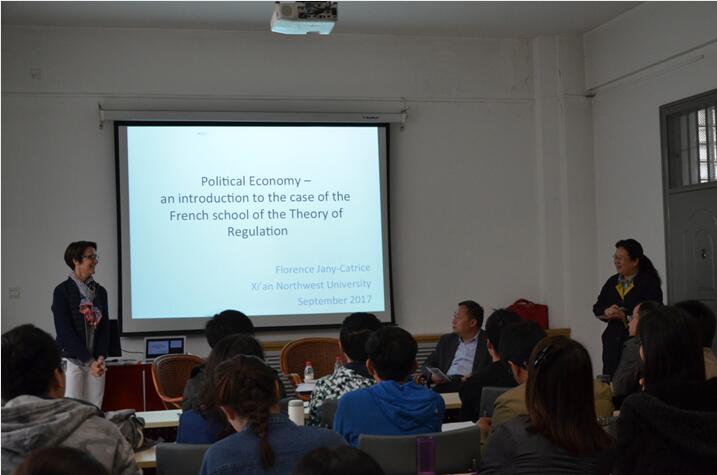 在对话上,任保平教授向参加活动的师生介绍了学院近年来与法国调节学派 及其重要成员Robert Boyer教授、Michael Agliatta教授和Florence Jany-Catrice教授等开展的系列学术活动,并介绍了学院“经济增长质量”研究团队与Florence Jany-Catrice教授开展“经济增长质量的测度”合作研究的进展情况。他授解释了中国特色政治经济学的核心和提出背景,指出中国特色政治经济学坚持马克思主义的基本立场和“以人民为中心”的研究导向,旨在通过分析中国经济的现实问题,发现经济规律,形成具有中国特色的学科体系、学术体系、话语体系。他指出,法国调节学派的核心学术理念和研究方法包涵了劳动技术分布、积累体制、调节模式、发展模式,已经形成了基本分析框架和理论框架。他说,学派分析资本主义经济现象的理论依据是马克思主义,但它克服了马克思主义过于宏大的弱点,采用了一系列细化的概念分析资本主义发展中的缺陷,为现代哲学社会科学提供了有力的解释工具。Jany-Catrice教授从法国调节学派的政治经济学本质入手,指出该学派三个分支共同目的是系统性理解资本主义的动态发展。她说,调节学派不仅是对马克思经济理论的拓展,而且采用历史的分析方法,聚焦于资本主义的转型。在此基础上,通过对比一般均衡理论,介绍了调节学派的核心概念,包括金融制度、竞争形式、工资制度、国家与经济的关系以及国际经济关系的调节。最后,Jany-Catrice教授介绍了调节学派的研究思路,包括准确描述制度形式、厘清复杂因素之间的逻辑关系、进行实践验证、分析调节模式的协调性、识别结构性危机的根源以及分析终结危机的途径。