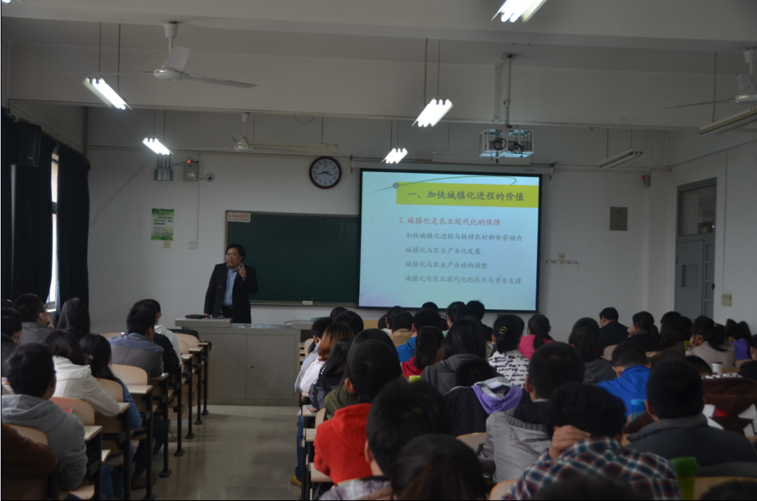 4月22日下午,贵州大学经济学院院长王秀峰教授应邀来我院为师生作了题为《城镇化与区域经济发展》的学术报告。