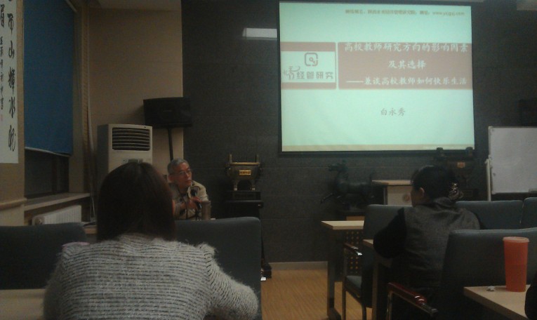 本学期经济管理类青年教师学术沙龙第一次活动(总第24期)于3月19日晚在太白校区学院311教室举行。本次活动邀请西北大学学术委员会副主任、776net必赢官网学术委员会主席白永秀教授作为主讲嘉宾,由经济学系主任何爱平教授主持,全院青年教师50余人参加本次活动。白教授以“高校教师研究方向的影响因素及其选择——兼谈高校教师如何快乐生活”为题,结合自身科学研究的经历,从理论到实践进行了精彩的演讲。