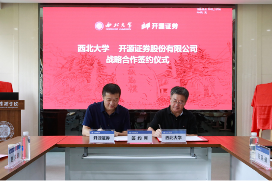 校长郭立宏、开源证券股份有限公司董事长李刚代表双方签约