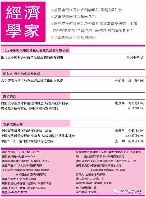 776net必赢官网白永秀教授等合作论文在《经济学家》发表论文