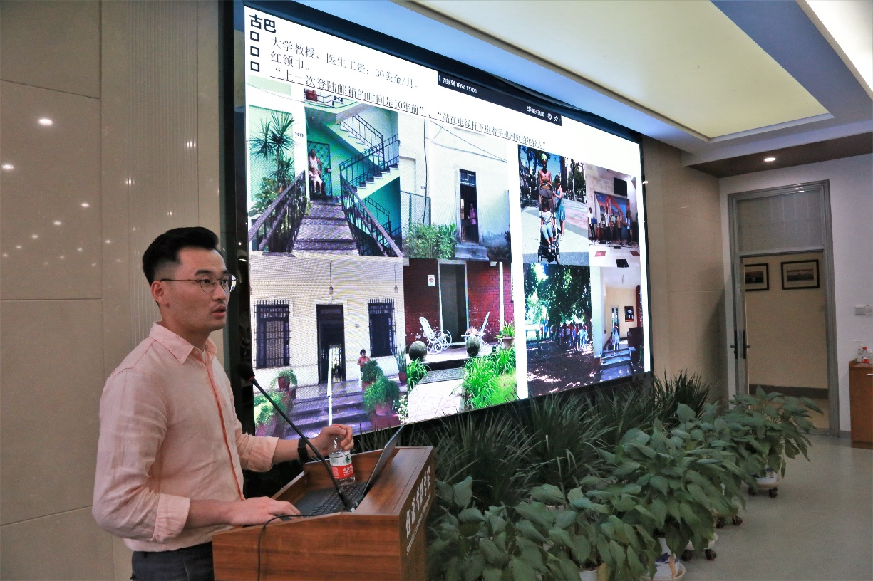 王栋以“世界这么大,我带你看看——在人间,我的大学”为题,分享了他在某全球领先的ICT(信息与通信)基础设施和职能终端提供商位于拉丁美洲的分支机构5年来的工作和生活体验,他介绍了主要工作的若干个国家,从社会制度、文化、信仰、经济等视角切入,为学弟学妹们呈现了一组真实且生动的拉美国家人民的生活片段。另外,王栋回忆了自己的大学生活,鼓励大家在认真学习专业知识的同时,不断探索并尝试人生中不同的可能性,找准自己的兴趣点,拓展生命的宽度,实现更高的价值。
