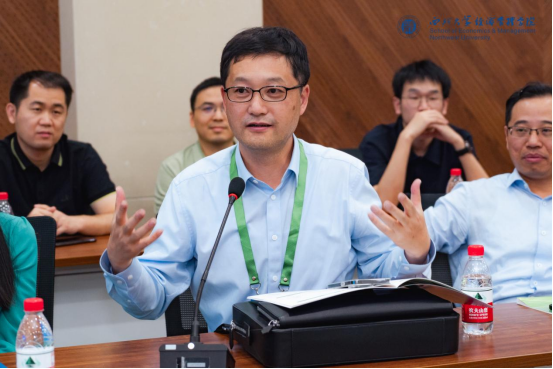 博士生论坛(七)由西北大学吴丰华教授主持,复旦大学刘志阔教授点评。西北大学的曾维康作了题为《城市供应网络视角下数字化政策的虚拟集聚效应研究》的报告;中山大学的周荃作了题为《数字政府影响收入差距的U型模式:来自全球的证据》的报告;西南财经大学的陈春作了题为《Momentum, Short-Term Reversal, and Retail Investor Participation》的报告。
