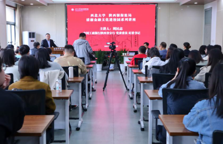 胡海龙代表陕西银保监局纪委在活动中讲话,他介绍了金融监管集合金融机构、行业社团各方智慧和力量开展清廉金融文化进校园的背景,强调牢守清廉底线在维护金融安全,防范金融风险中的现实意义。陕西银保监局在银保监会、驻会纪检监察组的领导下,与西北大学深入合作,探索在经管学院思政教育教学体系中嵌入清廉金融文化相关内容,前移反腐关口,从源头上强化金融人才培养,切实为防范金融领域腐败提供内生动力。本学期精心选定了课程体系内容和师资队伍,希望将清廉金融文化与思政教育有机结合,用清廉文化铸魂育人、固本培元。